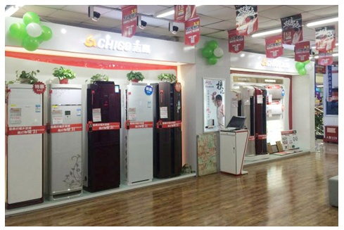 在終端門店的裝修設(shè)計(jì)上,一方面,志高將獨(dú)具特色的代言人元素、企業(yè)元素、企業(yè)文化、標(biāo)準(zhǔn)色彩等要素融入到其中,方便顧客更加直接、更加深入地了解企業(yè)產(chǎn)品和精神文化。
